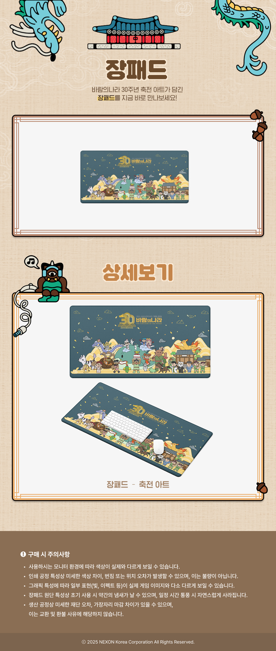 • 마우스패드 외곽의 특정 부분 색상이 조금 다를 수 있으나, 이는 봉제 및 마감 과정에서 발생하는 현상입니다.